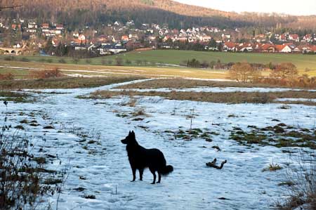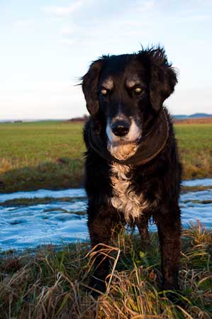 Filou nach seinem Sturz von der Bank, von dem Jürgen