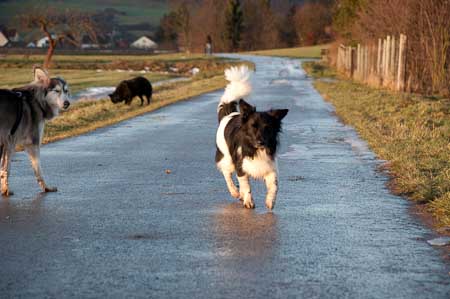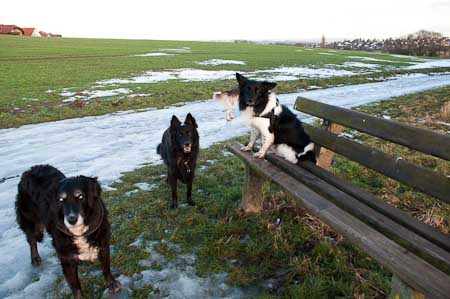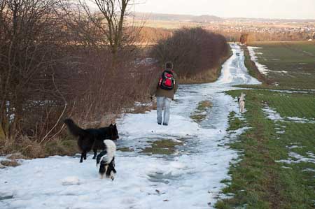 Einige Menschen mit Hunden haben wir getroffen. Unterwegs