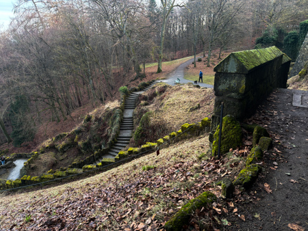 Weiter zum Entenfang. Über de, Burggarten an der Löwenburg ging es einige Treppenstufen runter, an der Löwenburg vorbei, weiter runter auf dem Weg zum Auto.