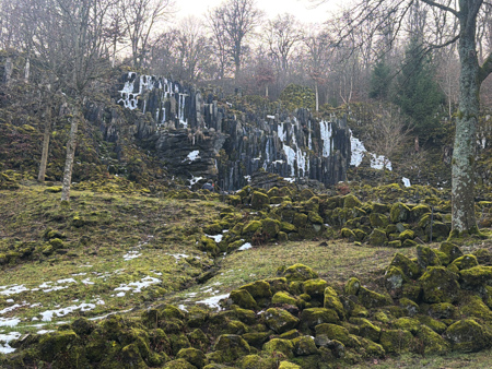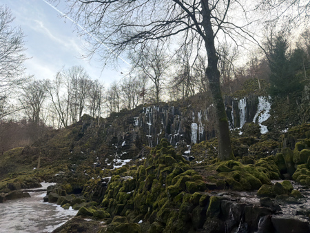 An der Löwenburg vorbei und dann weiter eher rechts zum Steinhöfer Wasserfall. Auch hier war das Wasser gefroren ;-)