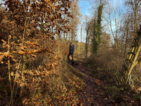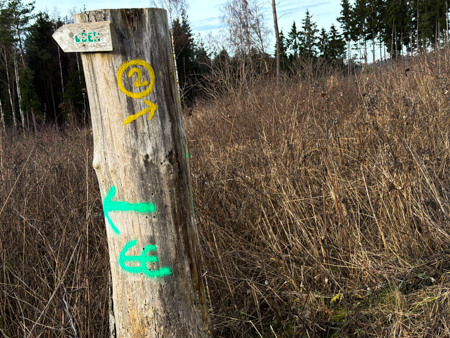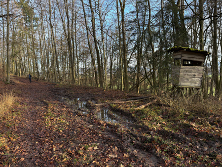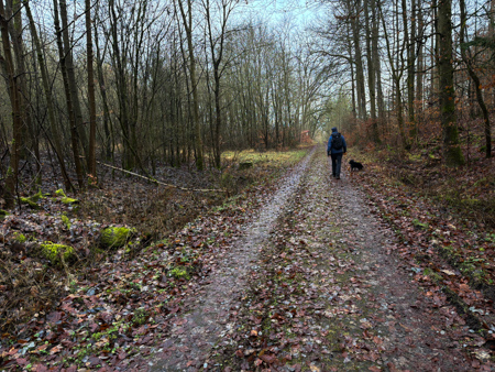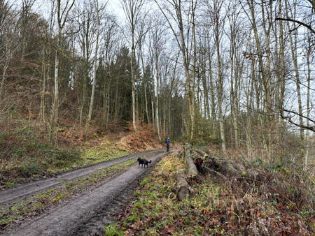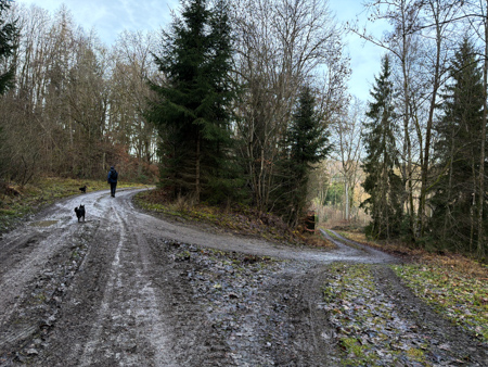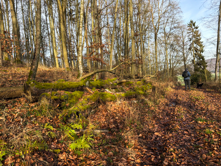Die Blätterwege in bunt waren noch da, allerdings auf fast allen Wegen mit Matsch und Steinen und auch im Wald wächst nichts mehr.... Da sind Baumaschinen gefahren um das Holz abzutransportieren. Am Ende der Tour sahen wir das, an einem Sonntag nicht verwendete Gerät - Kein Harvester... sondern das riesige gelbe 72 Faun Frisch - mit den riesigen Rädern.