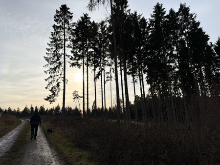 und wieder bergauf an Tannen vorbei