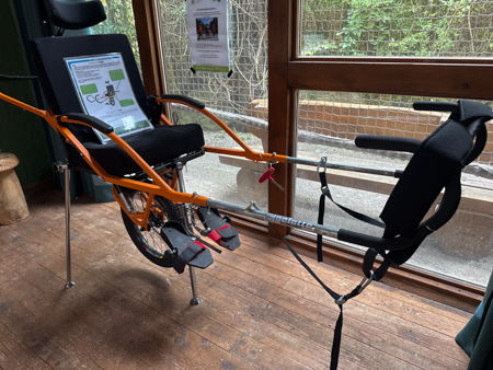 Für behinderte Menschen gibt es das "Joelette", ein geländegängiger Rollstuhl.