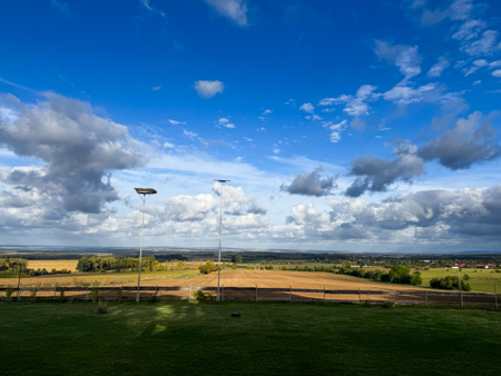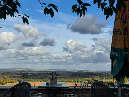 Die Aussicht ist einmalig und phantastisch - man schaut über das Thüringer Becken mit Wanderweganschluss zum Baumkronenpfad. Unten befindet sich der Kammerforst - es gehört zum Rettelbusch.