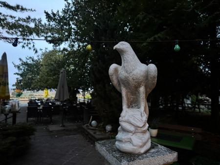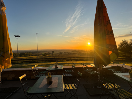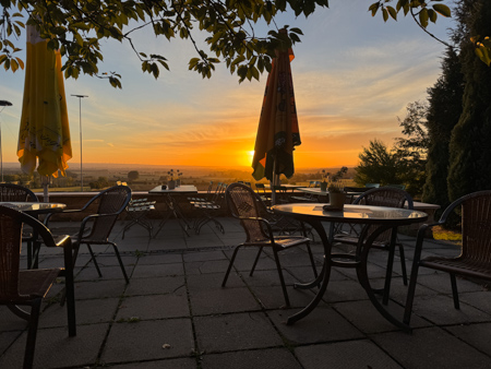 Die Terrasse war sehr groß mit vielen Tischen und Stühlen - da es schon September ist wurden sie nicht oder nur von Rauchern verwendet.