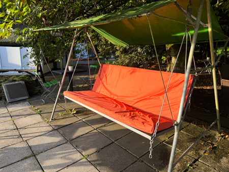 Die Bedienung brachte mir meinen Cafe auf die Terrasse und holte mir Sitzkissen...