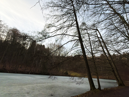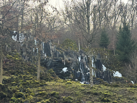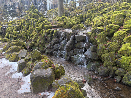 An der Löwenburg vorbei und dann weiter eher rechts zum Steinhöfer Wasserfall. Auch hier war das Wasser gefroren ;-)