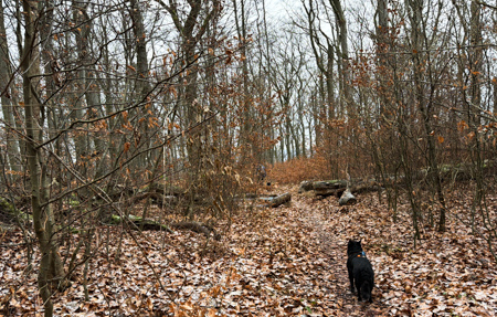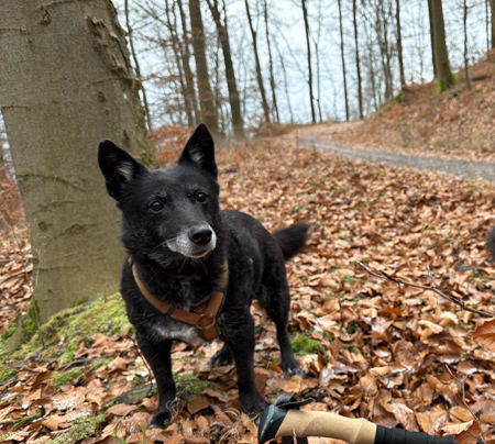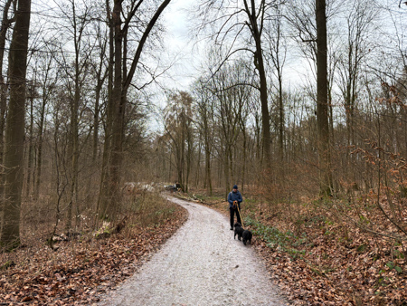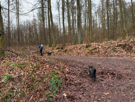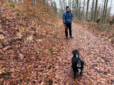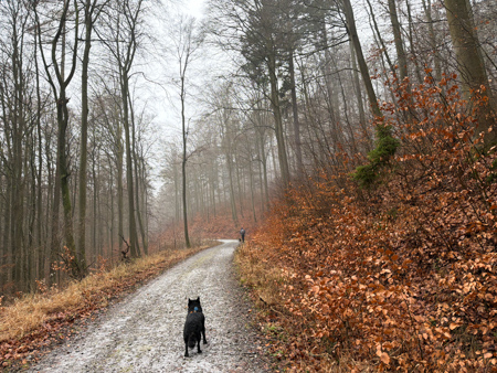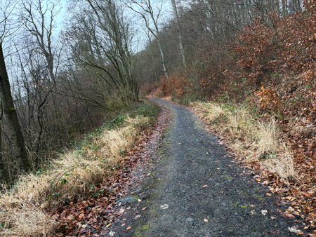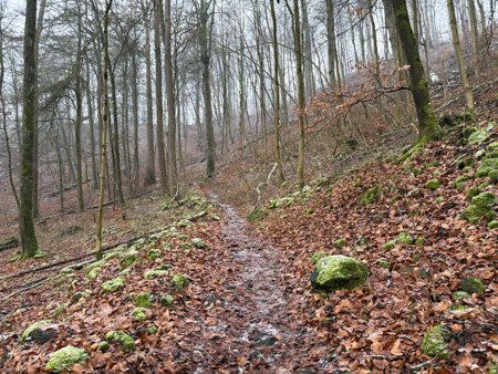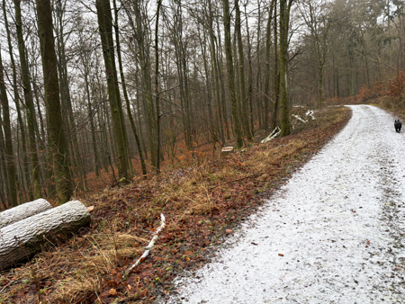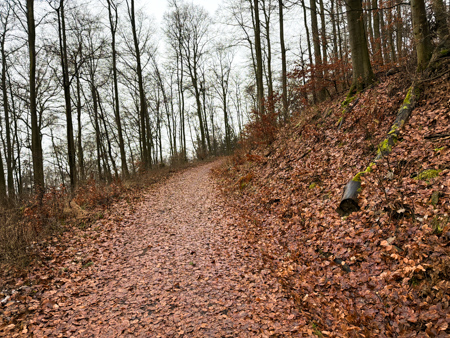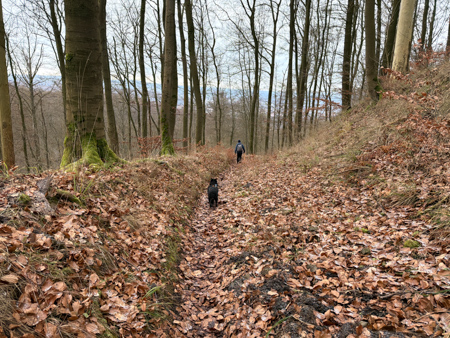 Es ging ständig bergab über den rutschigen Blätterweg - das hat mich ziemlich angestrengt - irgendwann waren wir am Auto, also am Wanderparkplatz Rasenallee.
