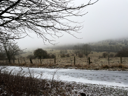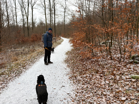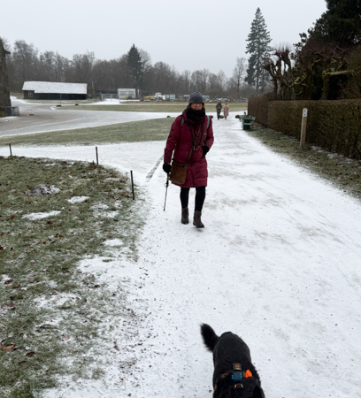 Auf dem Asphalt war es immer noch glatt, aber es wurde besser beim wandern, je weiter wir runter kamen desto weniger Schnee war es.