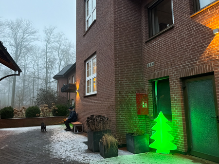 Aus dem Nespresso gab es für mich den Cafe Creme. Damit bin ich auf die Terrasse zum Rauchen gegangen, es war sehr glatt - also schnell wieder rein.