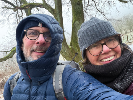 Wir kamen nach einigen Kilometern im Schnee und Nebel zu den Elfbuchen.