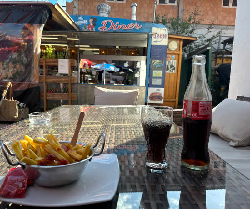 Leider gab es keinen vegetarischen Burger mehr - daher kalte Cola und leckere Pommes bei einer seht netten Bedienung