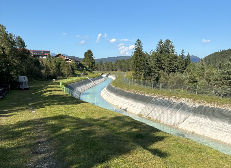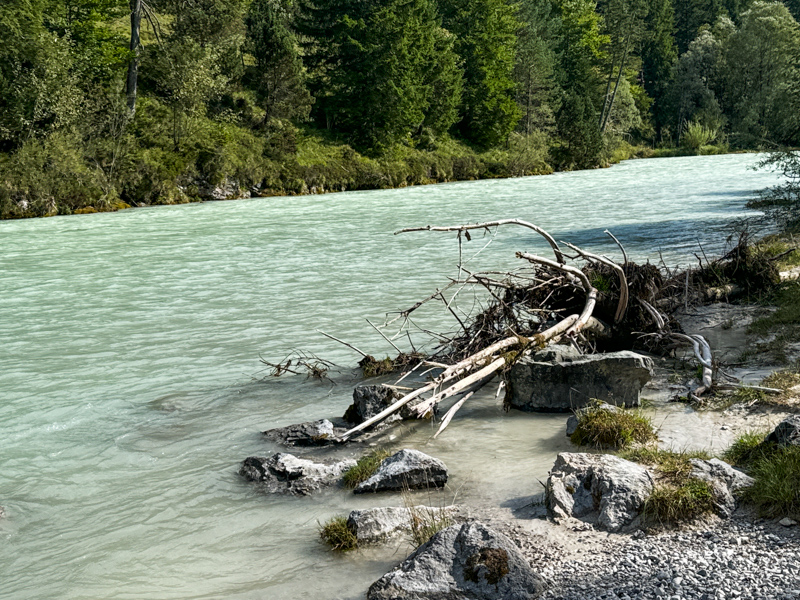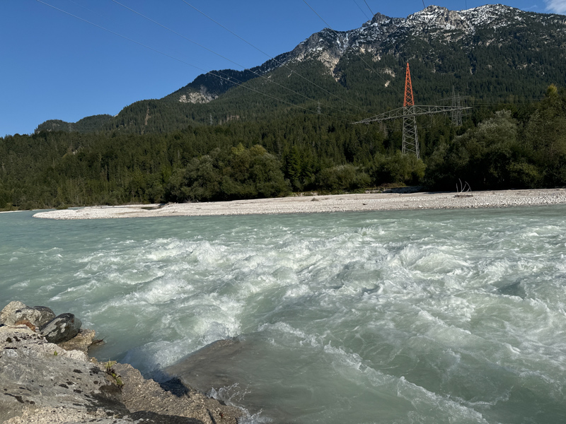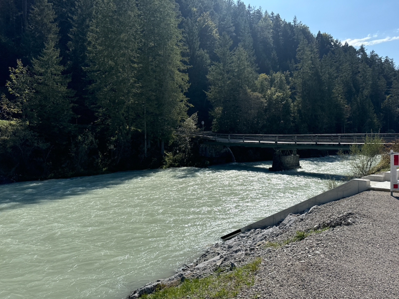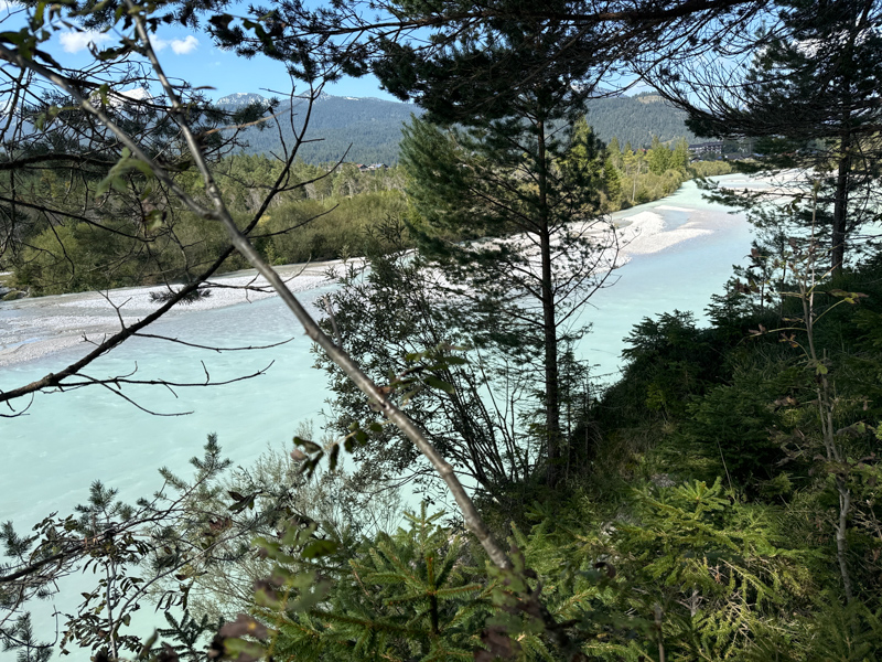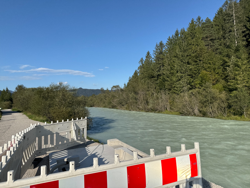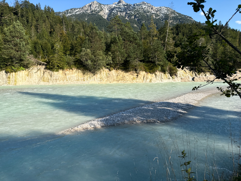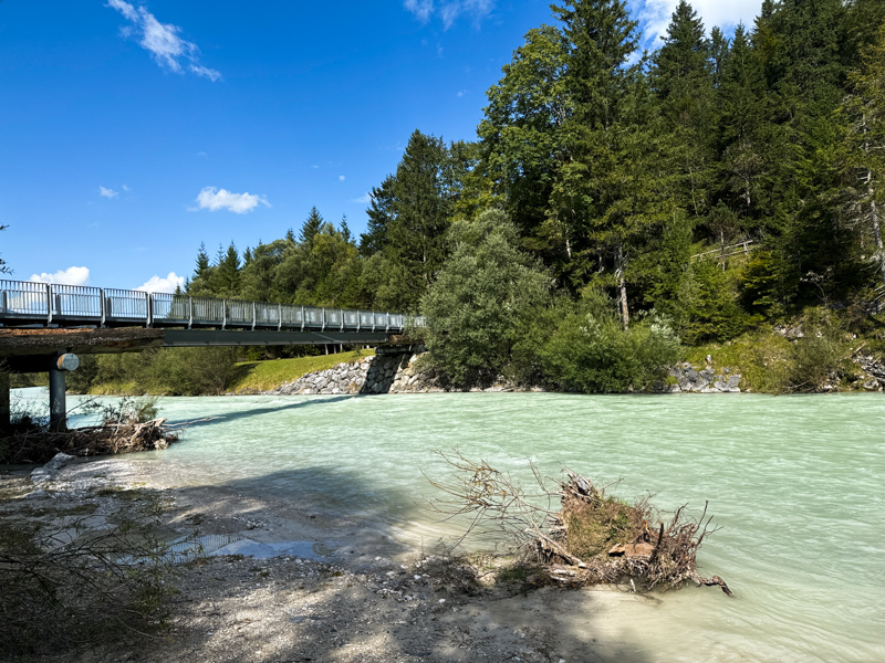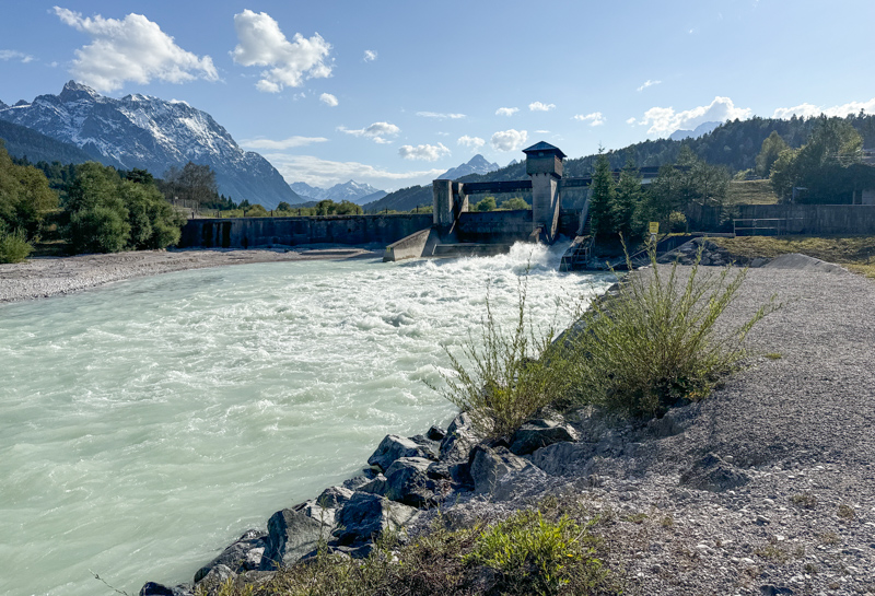 das Wehr der Isar von Krün, ca. 870 m bis nach Krün