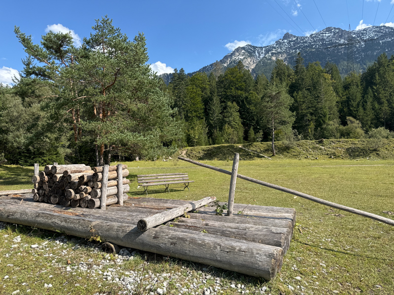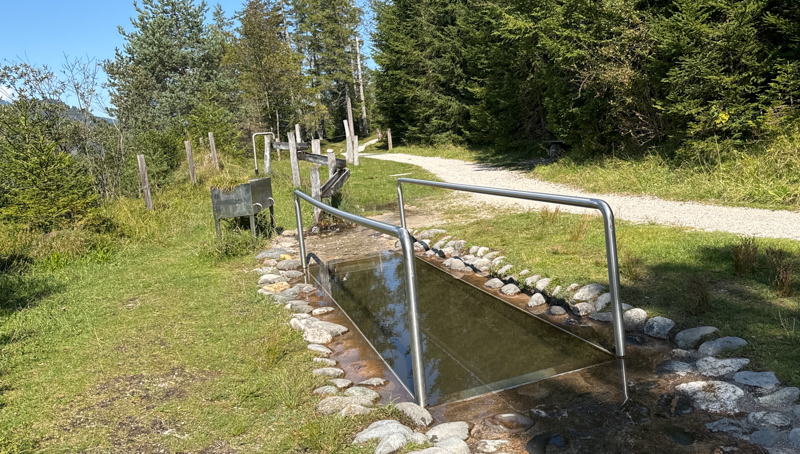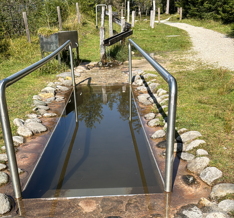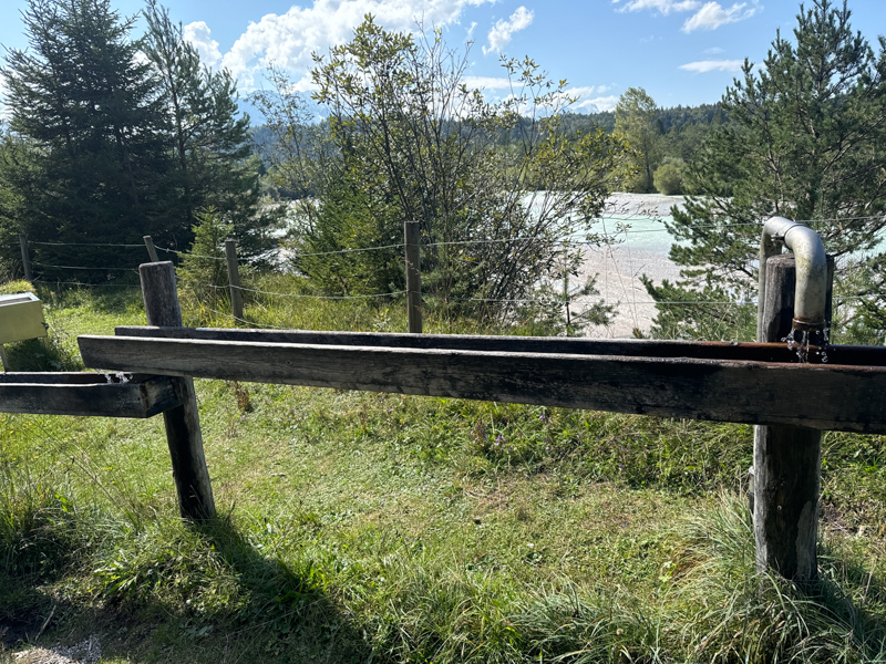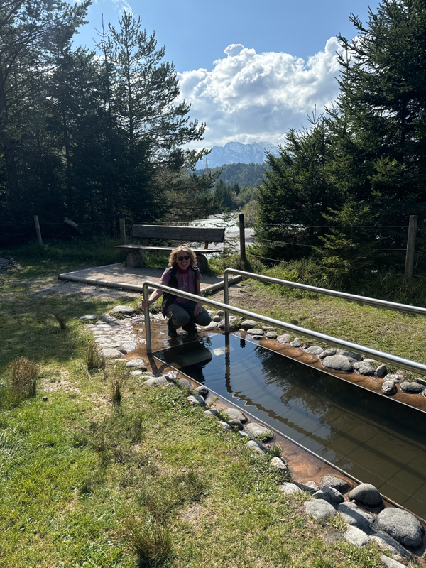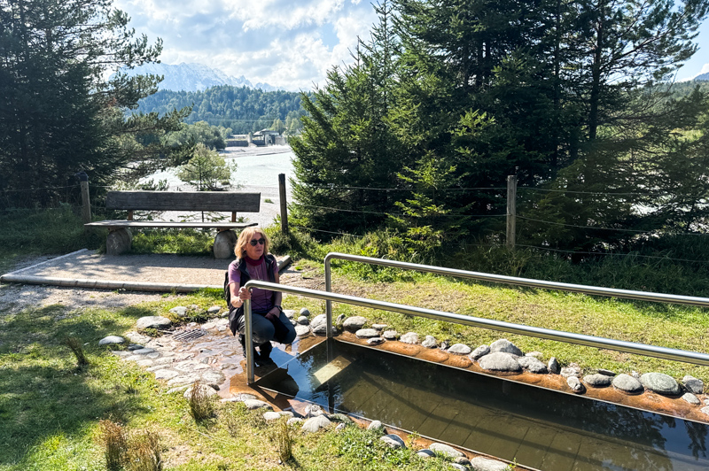 Ich dachte, neeee das kann nicht sein. Mitten auf dem Wanderweg bei Krün gibt es eine Möglichkeit im kalten Wasser das Wassertreten auszuführen, das vermisse ich schon lange! In der Natur Pur oberhalb der Isar gibt es einen alpenländischen Wellnessbereich a la "Kneippen"