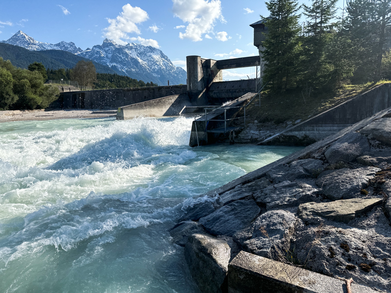 hier sieht sie wild aus, die Isar - es ist das Wehr von Krün