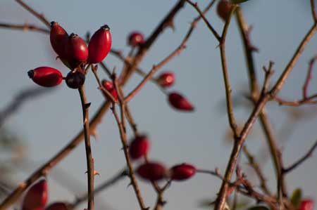Hagebutten vor blauem Himmel