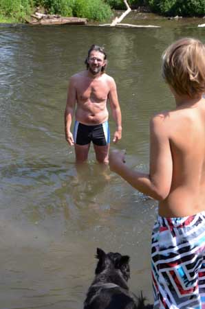 ich auf der Decke - Olli macht Wassertreten auf dem Wehr
