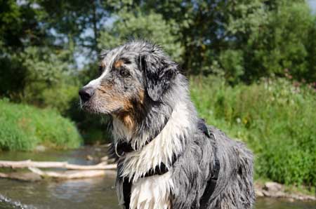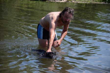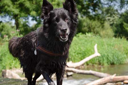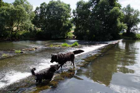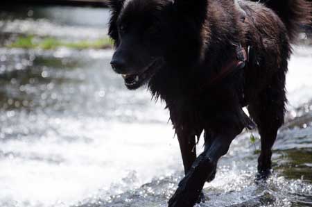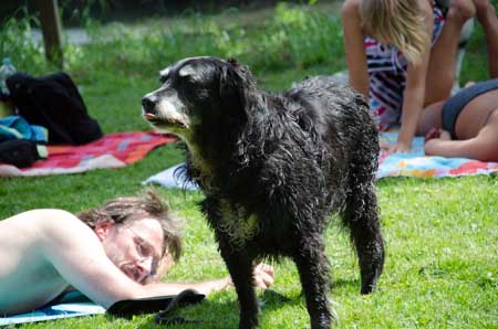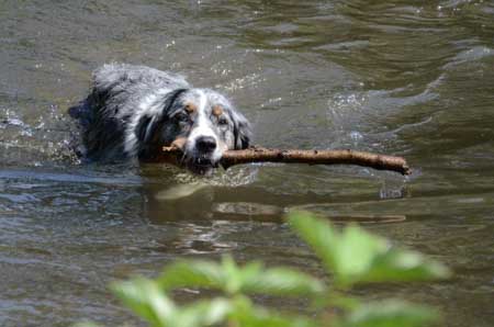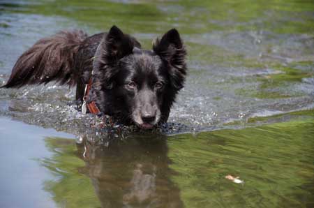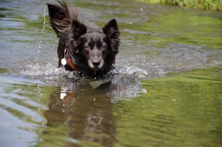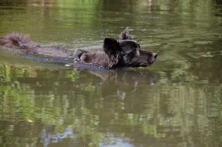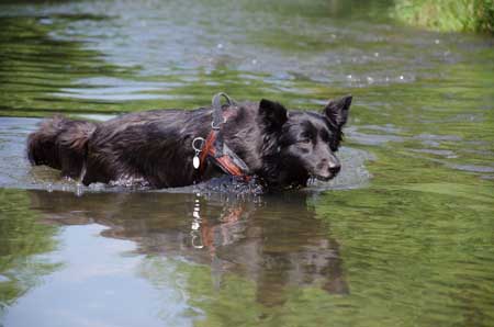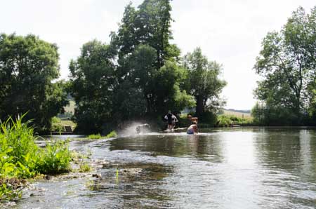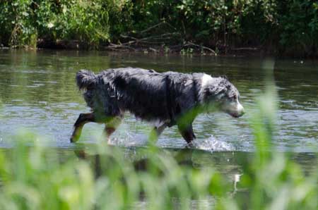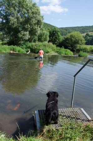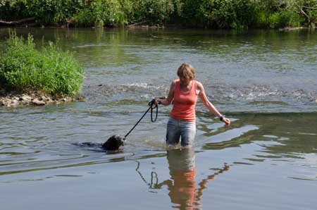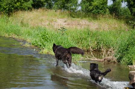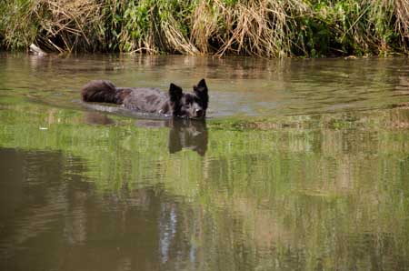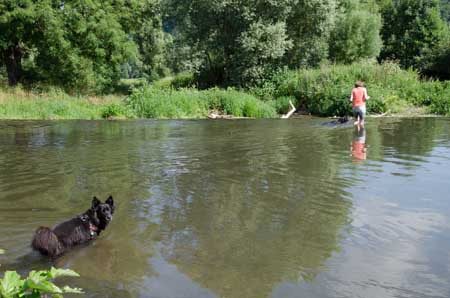 Naja, er hats überlebt und Problem ist, dass die Diemel eine starke Strömung hat und die Hunde alle abgetrieben werden. Für Theo ein grösseres Problem - mit seinen kurzen Beinen. Baghera und Olli sind auch länger nur auf der Stelle geschwommen ;-)