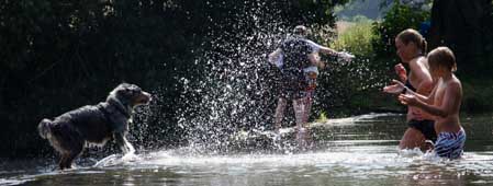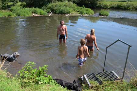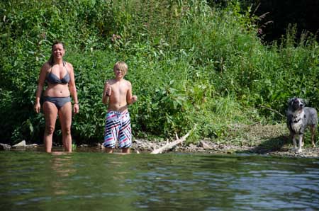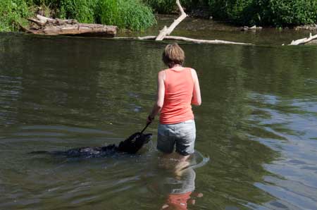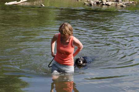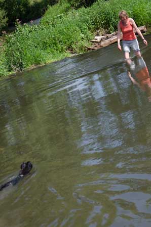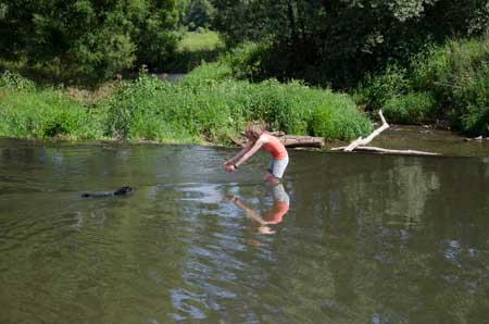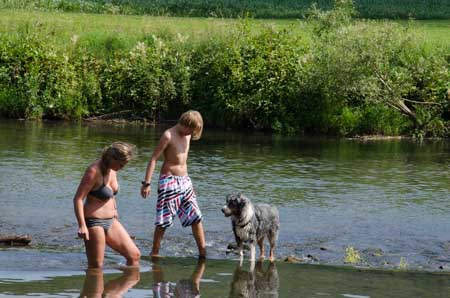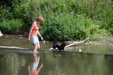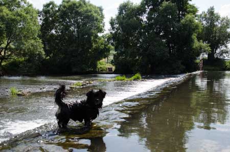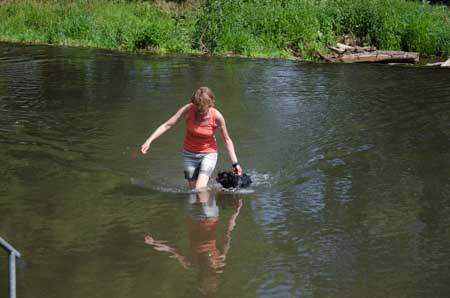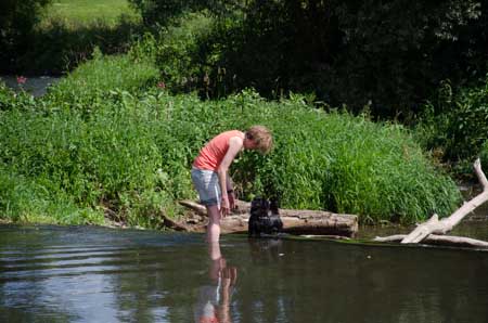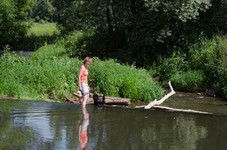 ich hab Mila an der Leine, damit sie auch mal in den Genuß der Diemel kommt