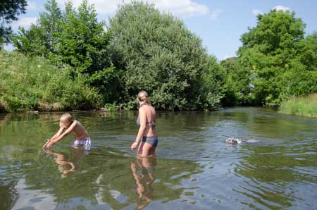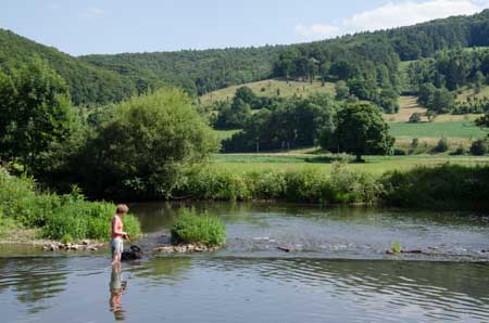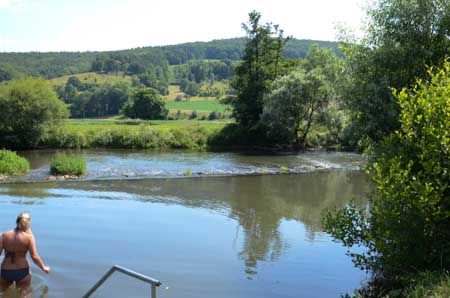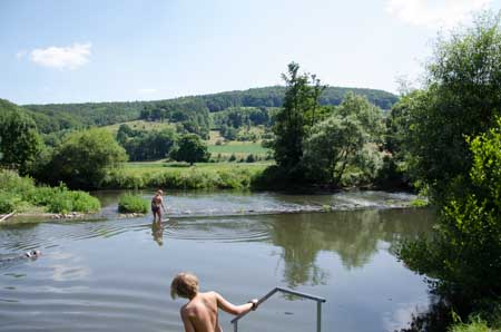 wir suchen uns einen Schattenplatz - ums Eck war der Einstieg in die Diemel