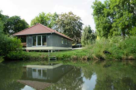 hinter uns das Anglerhaus - nicht besetzt - dahinter der Parkplatz und links davon die Straße