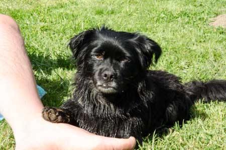 witzig - Theo legt seine Pfote vertrauensvoll auf Uwes Fuß ;-)
