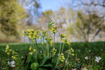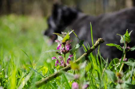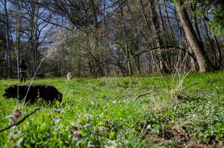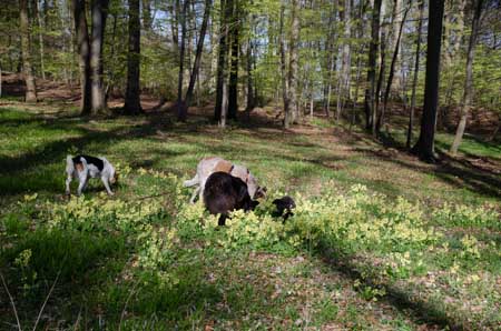 Silke hat die Schlüsselblumenwiese entdeckt und ich hab die Hunde abgelegt...