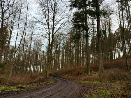 und wieder bergauf an Tannen vorbei