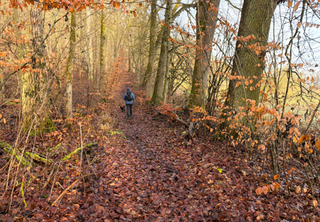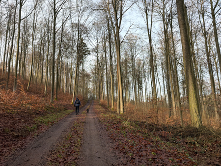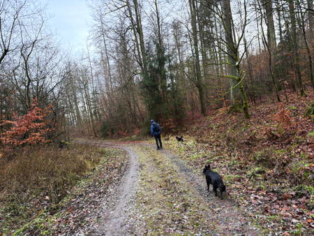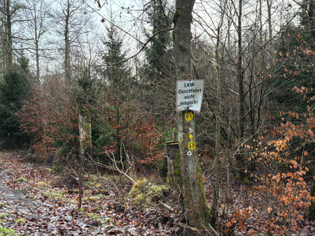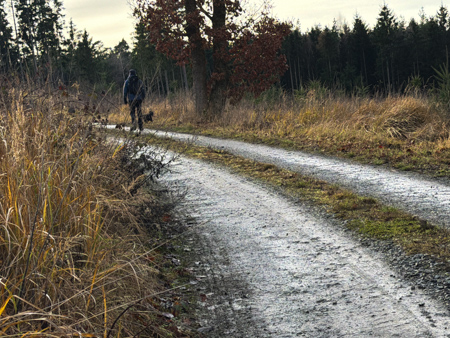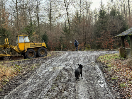 Die Blätterwege in bunt waren noch da, allerdings auf fast allen Wegen mit Matsch und Steinen und auch im Wald wächst nichts mehr.... Da sind Baumaschinen gefahren um das Holz abzutransportieren. Am Ende der Tour sahen wir das, an einem Sonntag nicht verwendete Gerät - Kein Harvester... sondern das riesige gelbe 72 Faun Frisch - mit den riesigen Rädern.