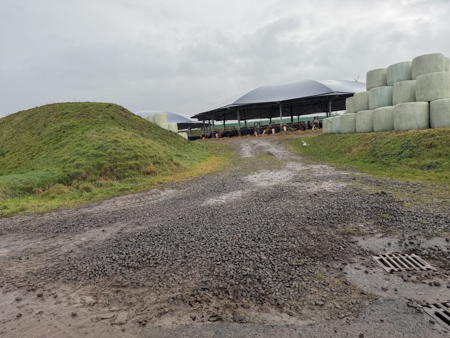einer der offenen überdachten Ställe (Round Pen) für die kalte Jahreszeit